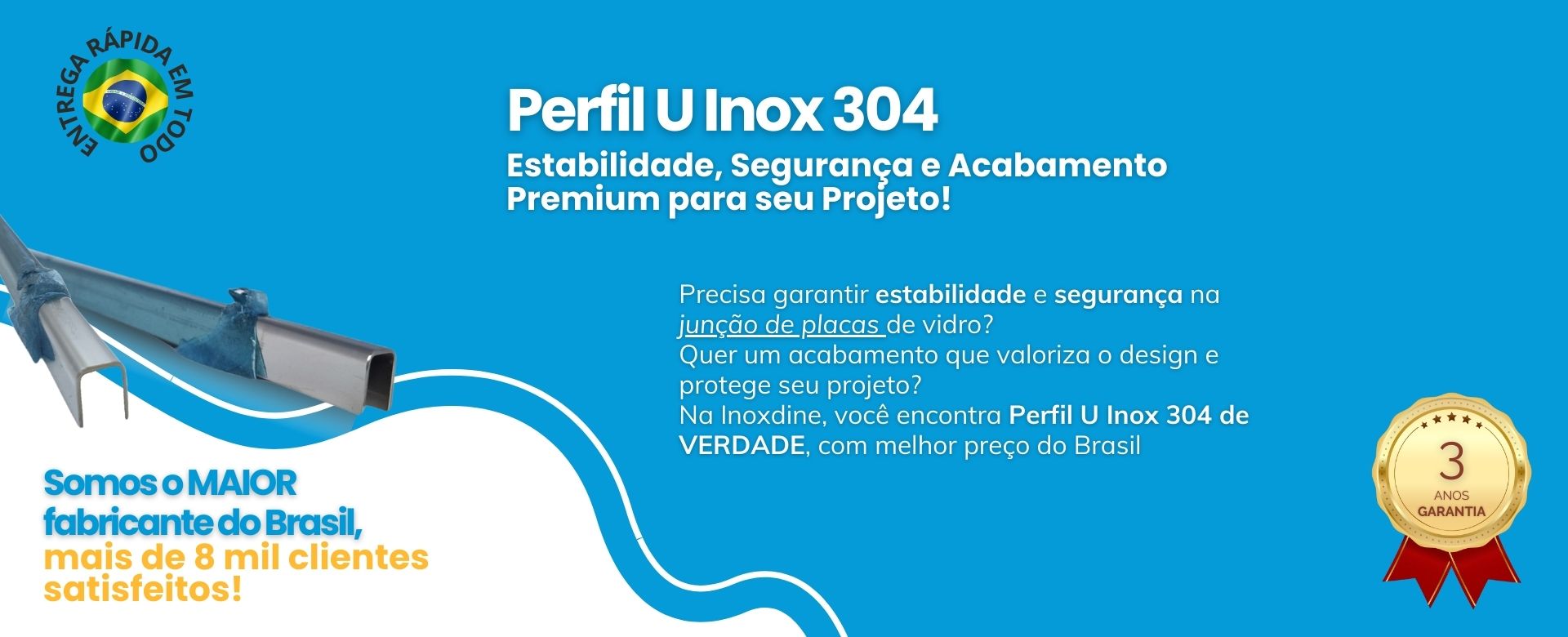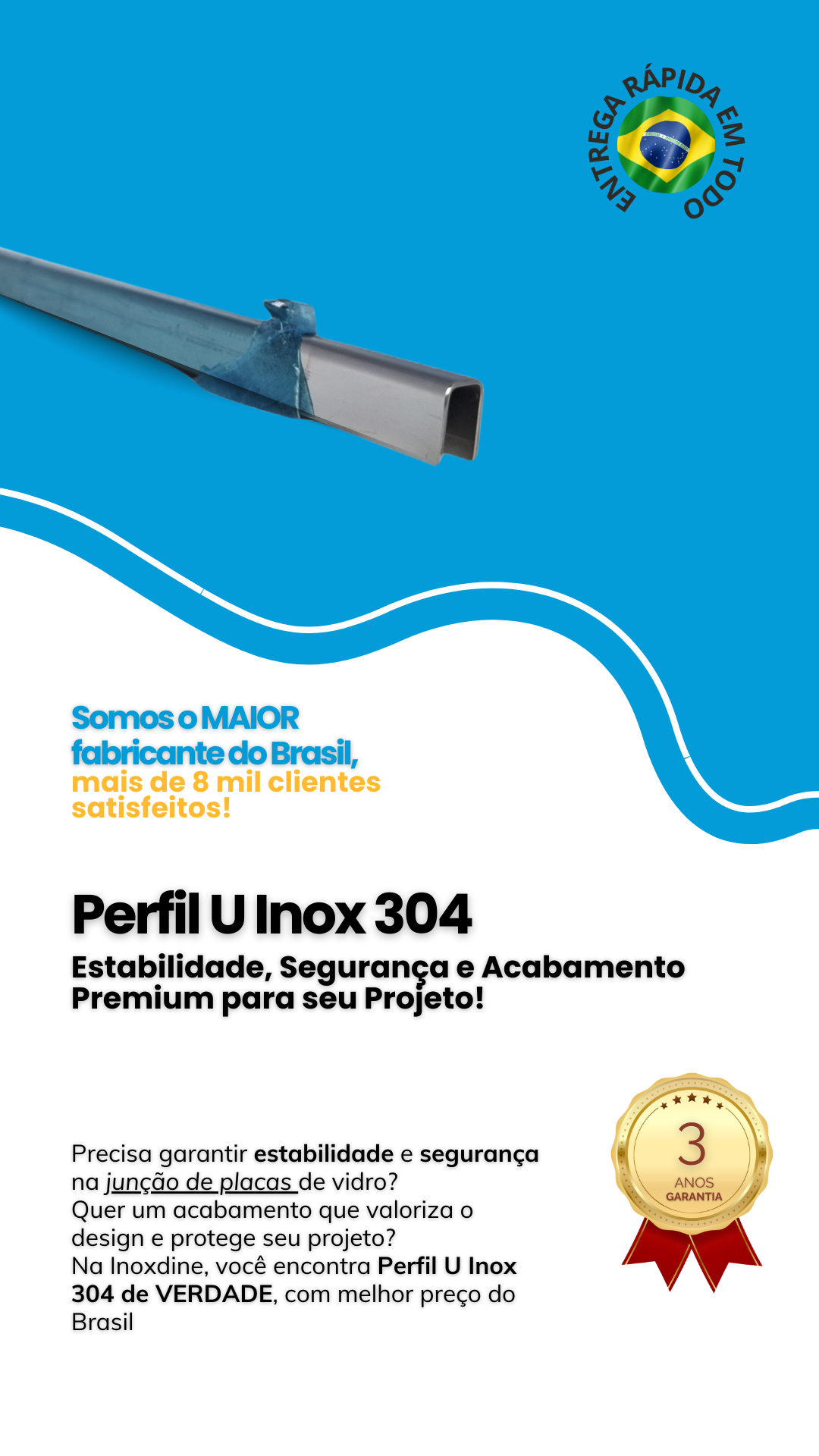 Maior firmeza para a união das suas placas de vidro com o Perfil U Inox 304