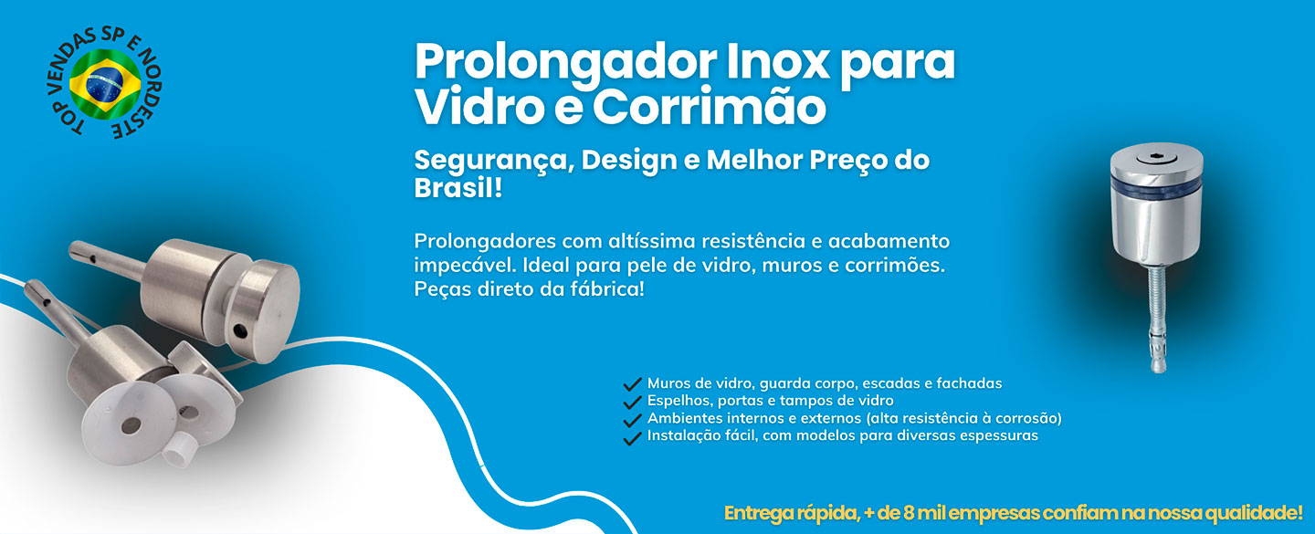 Prolongadores com altíssima resistência e acabamento impecável. Ideal para pele de vidro, muros e corrimões.