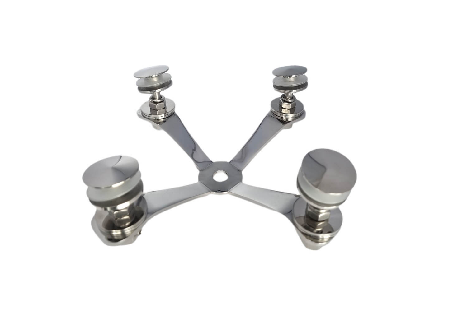 Dispositivo projetado para fixar painéis de vidro em estruturas de parede, proporcionando estabilidade e segurança. Sua função principal é distribuir uniformemente a carga e resistir às forças externas, mantendo os painéis de vidro firmes no lugar.